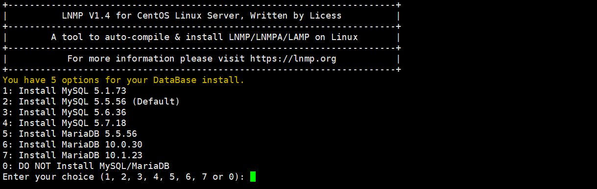 wget http://soft.vpser.net/lnmp/lnmp1.4.tar.gz -cO lnmp1.4.tar.gz && tar zxf lnmp1.4.tar.gz && cd lnmp1.4 && ./install.sh lnmp数据库可以默认(直接Enter)