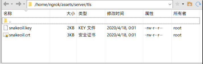 full_chain.pem和private.key上传到ngrok/assets/server/tls/目录下,并重命名为snakeoil.crt和snakeoil.key,如图