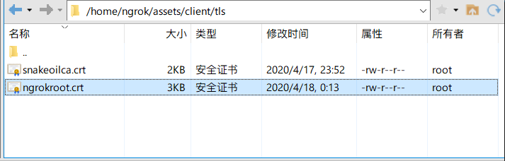 将full_chain.pem上传到ngrok/assets/client/tls/目录下,并重命名为ngrokroot.crt,如图