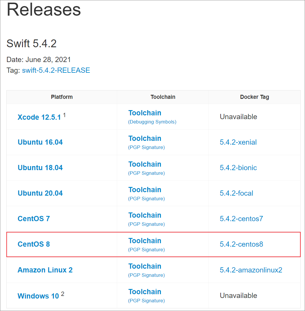 mkdir /usr/local/swift - 去这里找对应系统上的 Swift 开发环境包。